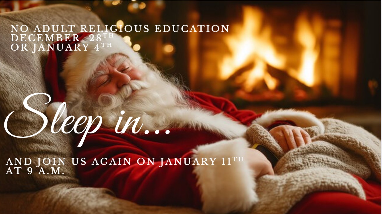 Our adult religious education class will be taking a break for the next two Sundays (31 December 2025 and 4 January 2026).