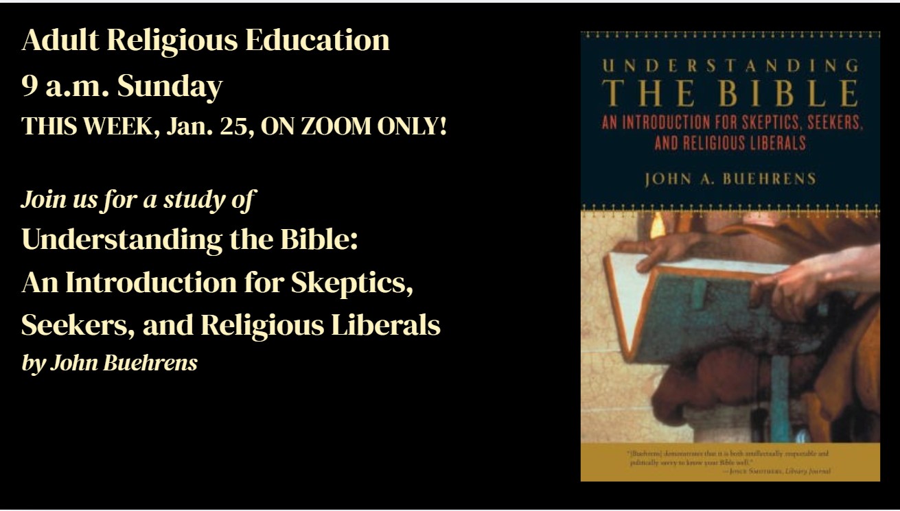 For this Sunday, we continue our study of Understanding the Bible: A Guide for Skeptics, Seekers, and Religious Liberals by former Unitarian Universalist Association President Rev. John Buerhens.