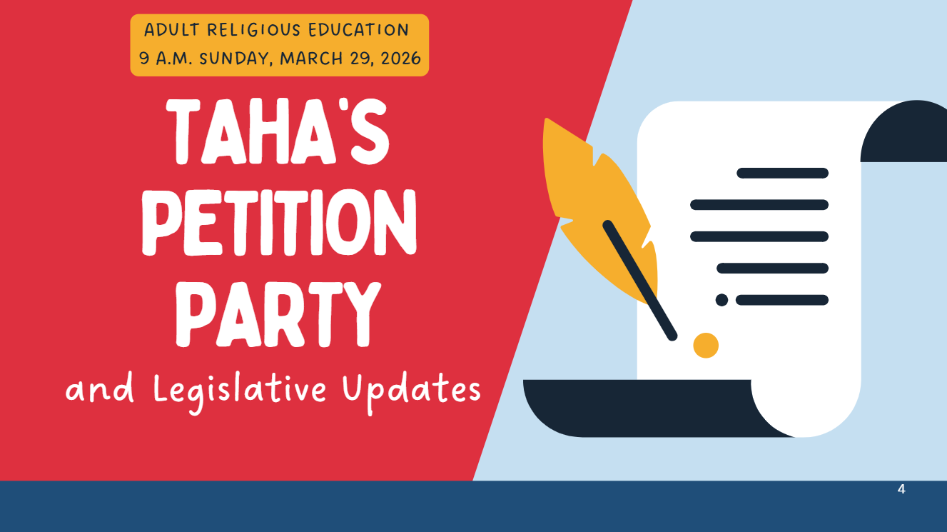 For this Sunday, we will have “Taha’s Petition Party and Other Legislative Updates.”