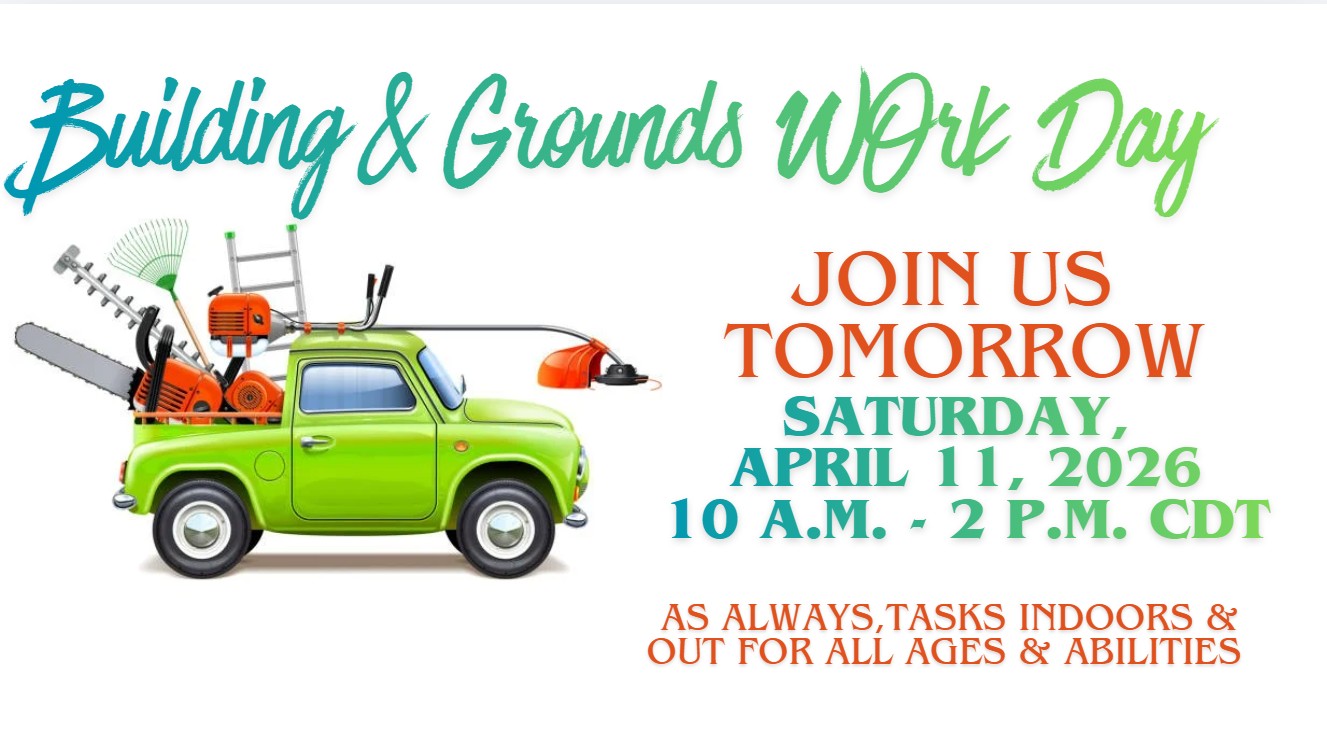 Our monthly building and grounds work day is happening on Saturday (11 April 2026) from 10:00 AM to 2:00 PM.