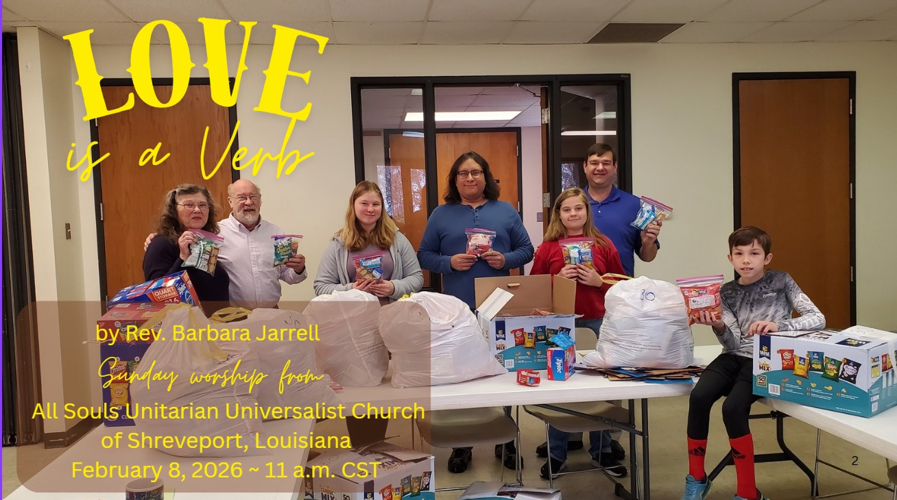 Please join us this Sunday (8 February 2026) at 11:00 AM for “Love is a Verb” by Rev. Barbara Jarrell.